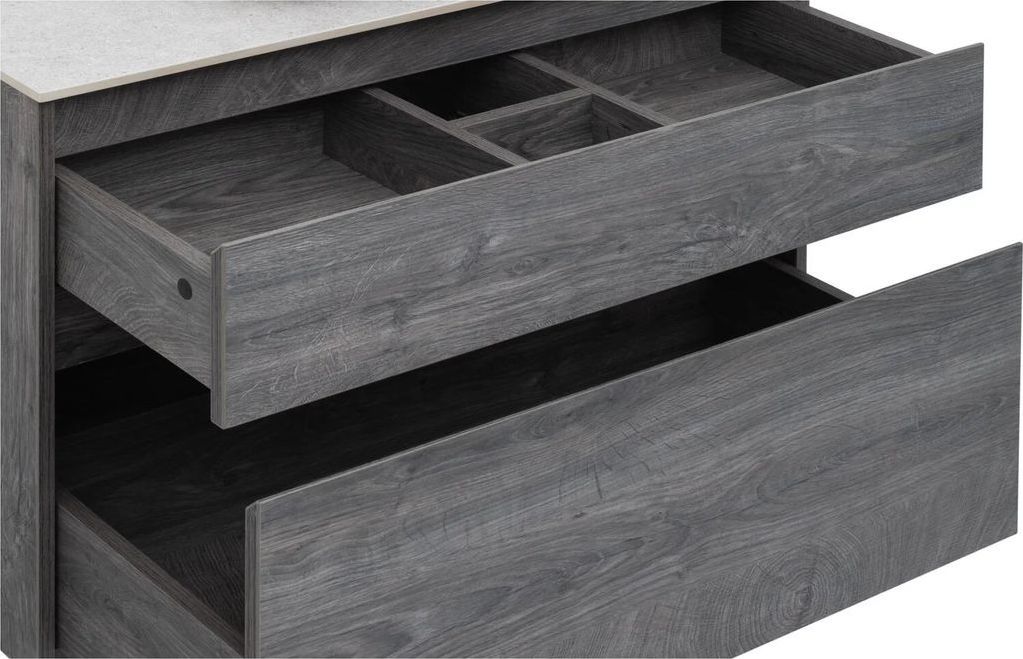- Тумба под раковину Aquanet Nova Lite 100 из влагостойкой ламинированной древесно-стружечной плиты в благородном цвете «дуб рошелье» имеет достойный вид. Фактура натурального дерева выглядит изысканно, а подвесной монтаж придает визуальную легкость тумбе шириной 100 см. Она оборудована двумя выдвижными ящиками. Ящики довольно вместительные и позволяют разместить все необходимое. Фасады выполнены с декоративной интегрированной ручкой, не имеющей острых краев и внутренних углов, что обеспечивает удобство в эксплуатации и легкий уход за мебелью.