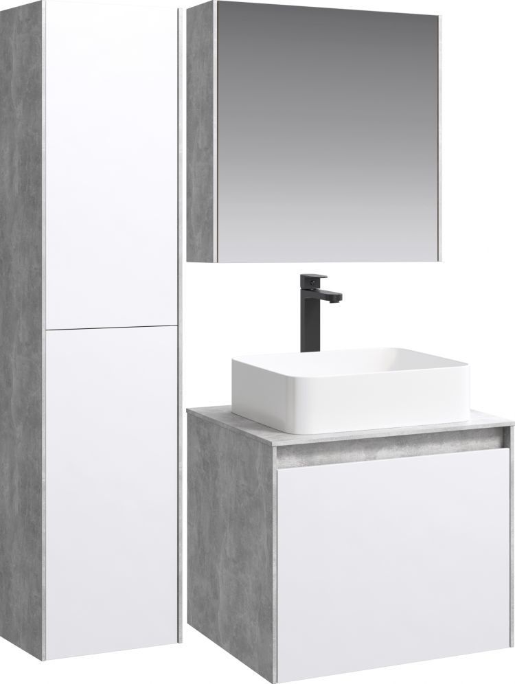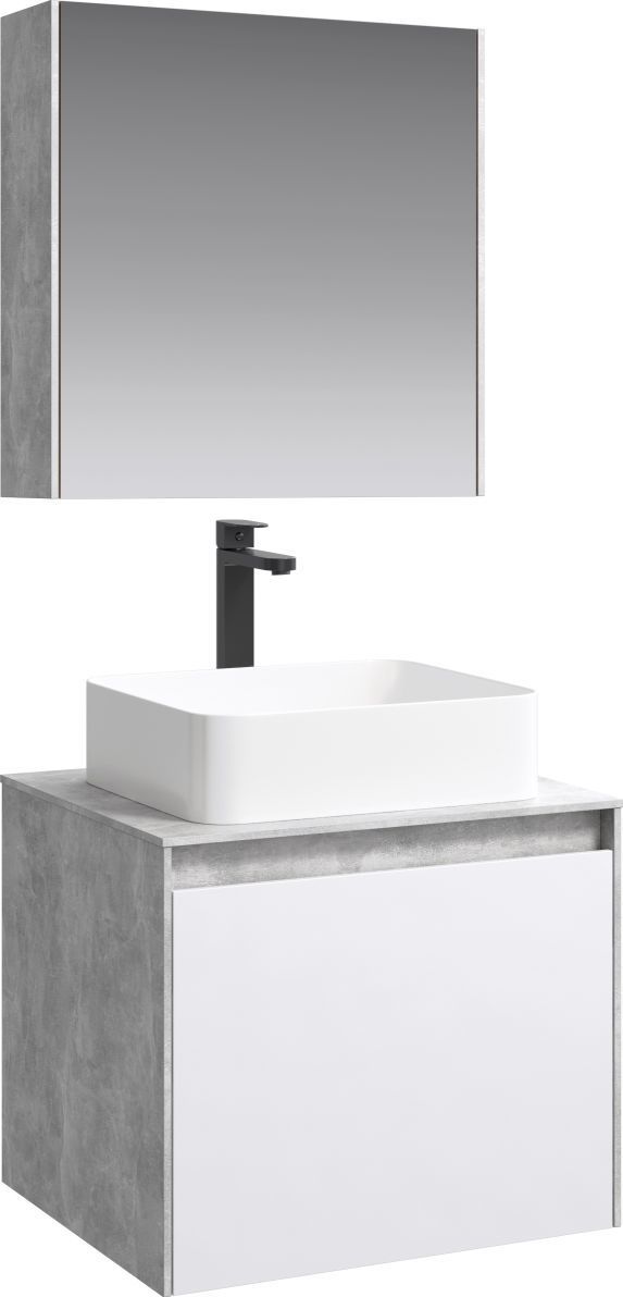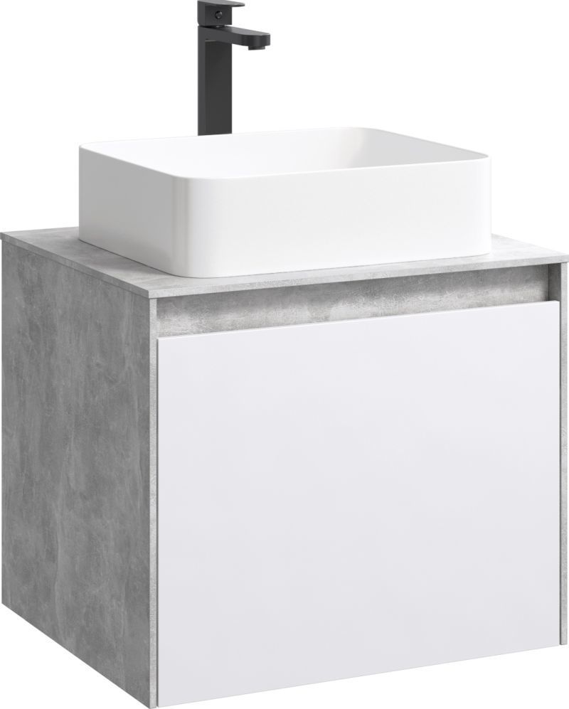 Тумба подвесная со столешницей Aqwella 5 Stars Mobi 60 см MOB0106BS/MOB0706W, бетон светлый/белый