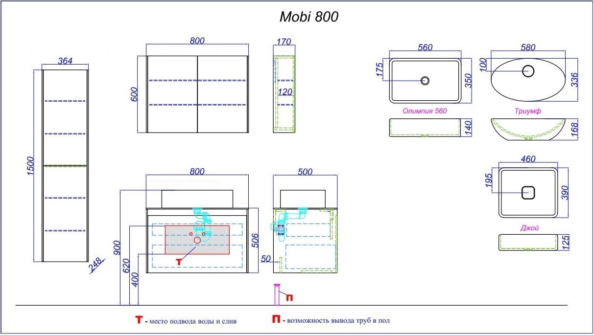 - в комплект тумб Mobi входит специальный сифон, позволяющий экономить пространство мебели,поэтому внутренний ящик тумб полноразмерный