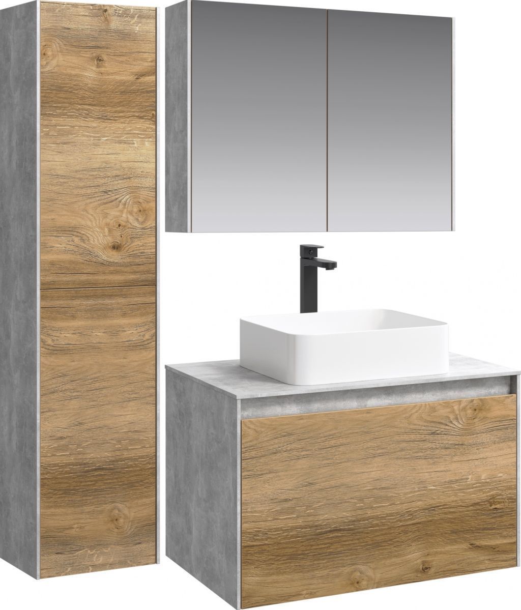 Тумба подвесная со столешницей Aqwella 5 Stars Mobi 80 см MOB0108BS/MOB0708DB, бетон светлый/дуб балтийский