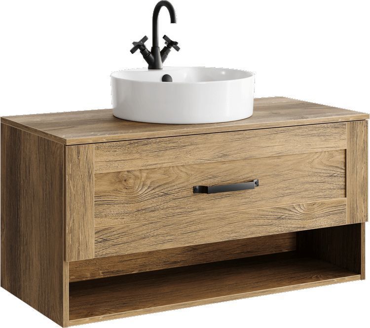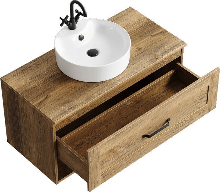 Тумба подвесная Aqwella Craft 100 со столешницей, с одним ящиком, цвет дуб балтийский.