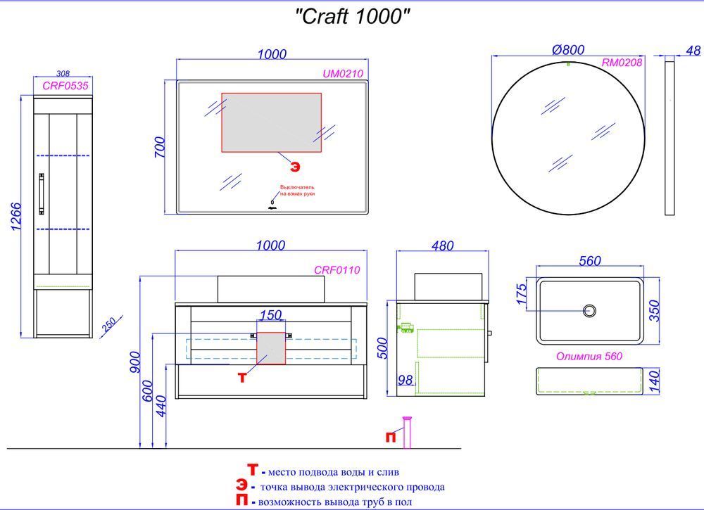 Описание тумба со столешницей Aqwella CRF0110DB