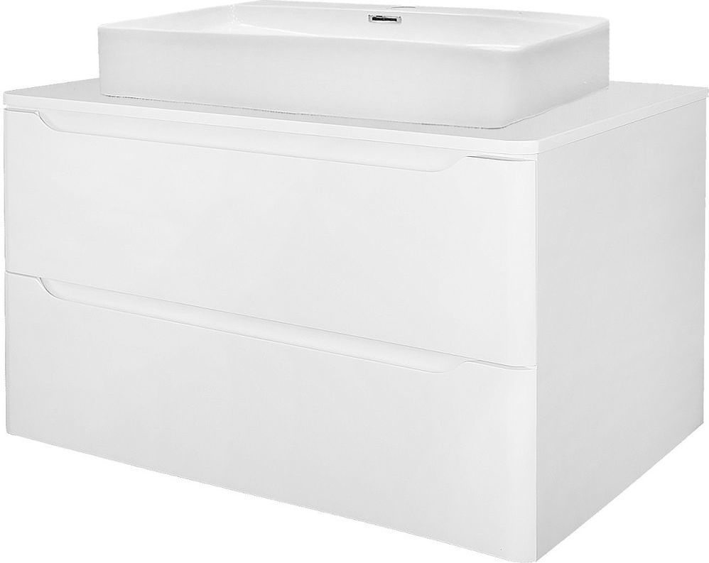 Тумба подвесная Azario Lotos 80 см со столешницей, 2 выдвижных ящика с доводчиком, цвет белый.
