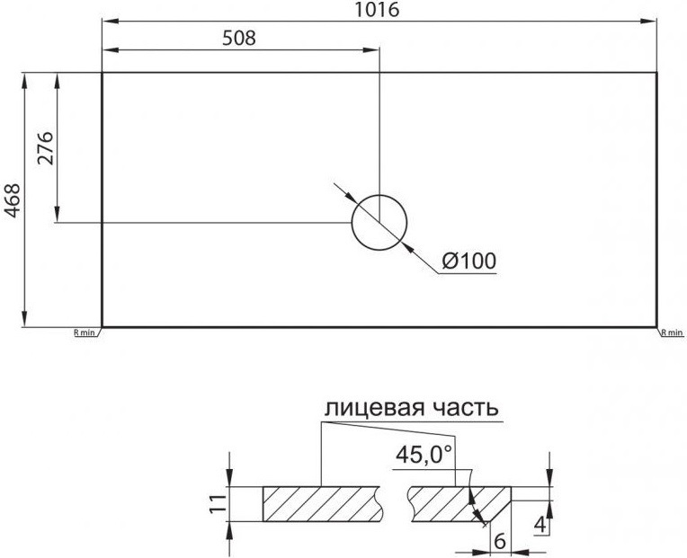 - столешница поставляется с отверстием под раковину-чашу, без отверстия под смеситель, для установки с настенным смесителем