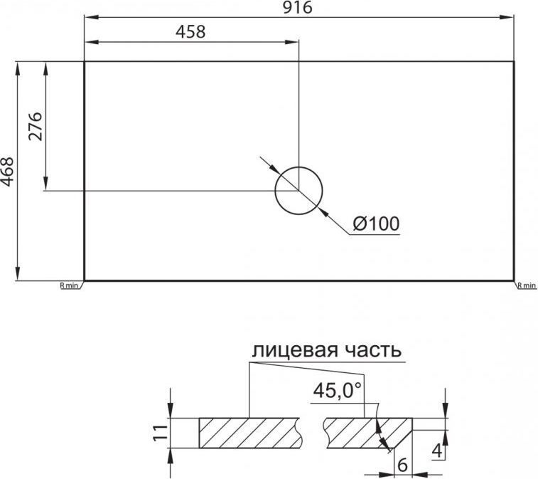 - Система хранения: 2 выдвижных ящика с врезными (фрезерованными) ручками в плоскости фасада
