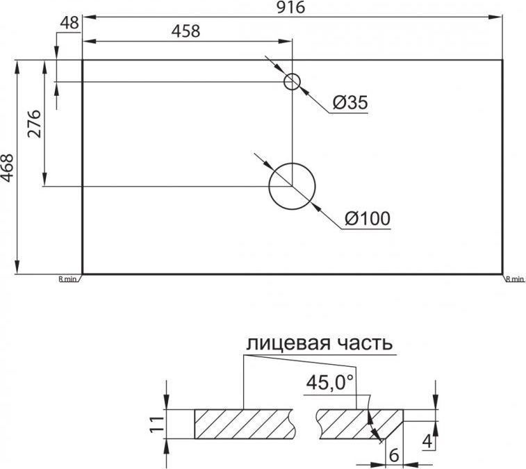 - Отверстие под смеситель