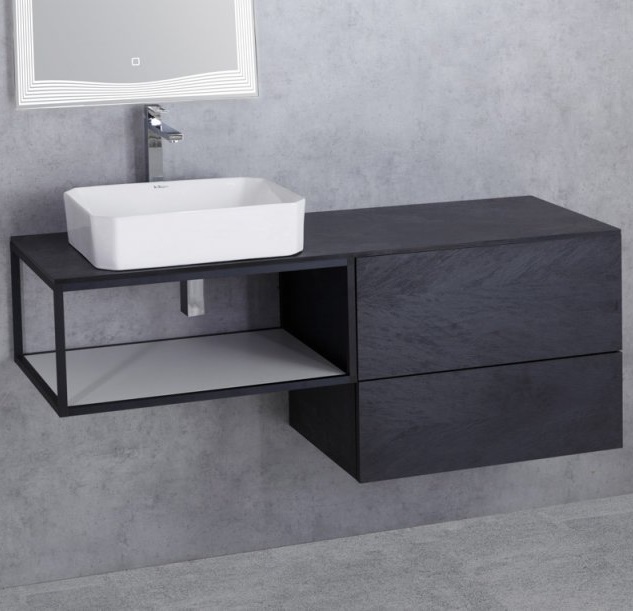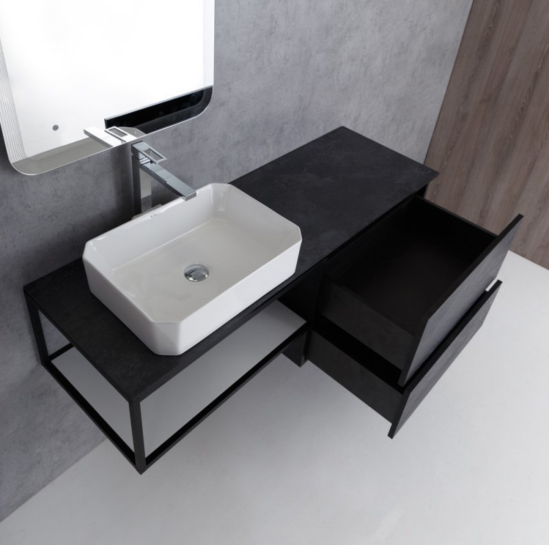 Тумба подвесная со столешницей Cezares CADRO-70/46/30-1C-SO-MET 140 см, черный