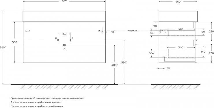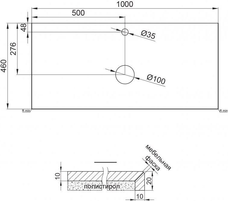 - столешница из керамогранита, с отверстиями под смеситель и под донный клапан