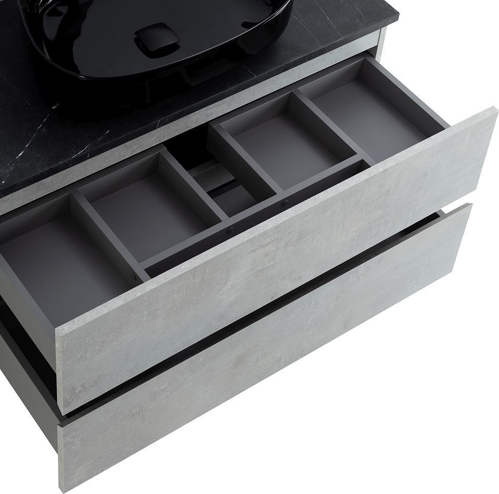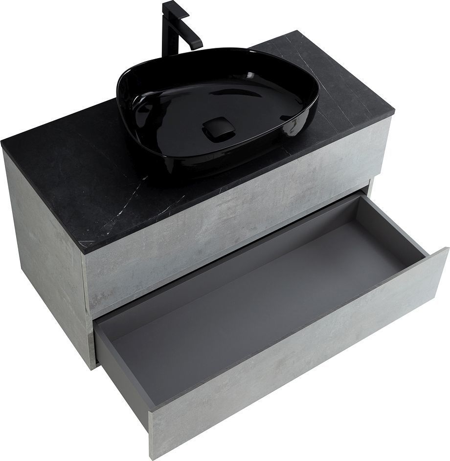 Тумба подвесная со столешницей Cezares MOLVENO 46-100-2C-SO-BET 100 см, Beton/Marmo Nero Opaco