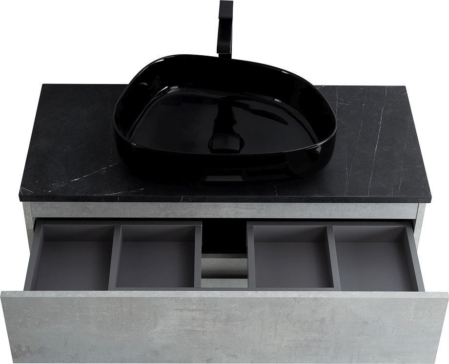 Тумба подвесная со столешницей Cezares Molveno 100 см, цвет тумбы - Beton, цвет столешницы - Marmo Nero Opaco (Чёрный матовый мрамор). Раковина и смеситель приобретаются отдельно.