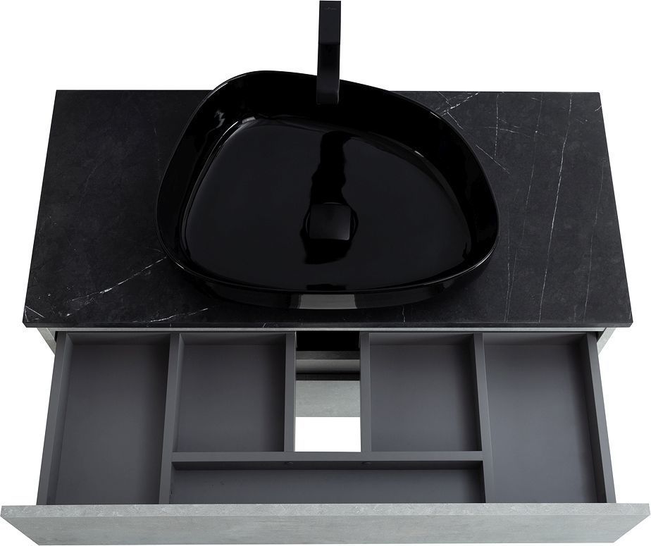 Тумба подвесная со столешницей Cezares Molveno 80 см, цвет тумбы - Beton, цвет столешницы - Marmo Nero Opaco (Чёрный матовый мрамор). Раковина и смеситель приобретаются отдельно.