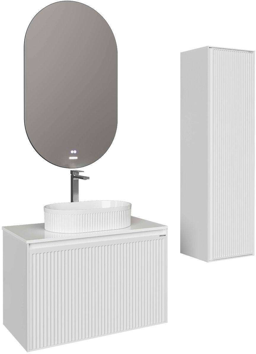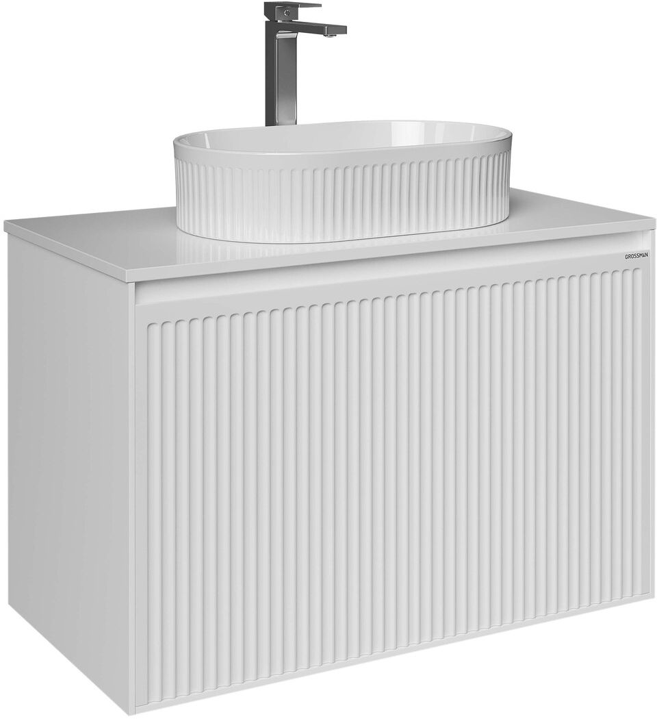 Тумба подвесная Grossman Кристалл 80 см со столешницей, цвет белый глянцевый.