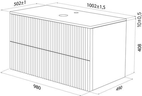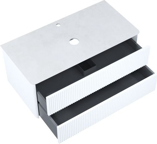 - Вместительная подвесная тумба для ванной комнаты Aiger с выдвижными ящиками и столешницей из керамогранита – красивый лаконичный дизайн вне времени с трендовой вертикальной фрезеровкой.