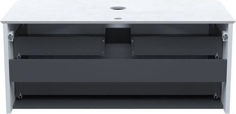 - Вместительные ящики с внутренней отделкой в практичном графитовом цвете – стильный внешний вид и много места для хранения. Эргономичная пластиковая защита сифона.