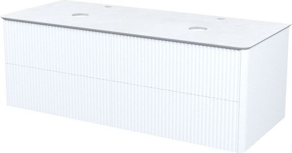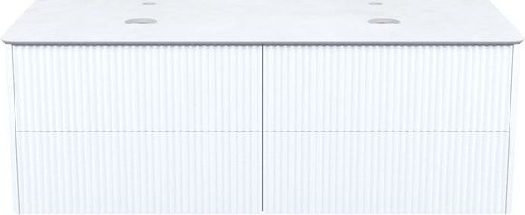- Большая подвесная тумба для ванной комнаты Aiger в классическом белом цвете с выдвижными ящиками и столешницей из керамогранита – красивый лаконичный дизайн вне времени с трендовой вертикальной фрезеровкой.