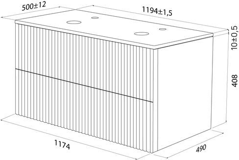 - Влагостойкая матовая столешница из тонкого сверхпрочного керамогранита стильного цвета «светло-серый бетон» повторяет радиус скругления угла тумбы. Край филигранно запилен под 45 градусов и отполирован до глянцевого блеска – выглядит эстетично и при этом безопасен. Простая в монтаже – с готовыми отверстиями под смеситель и раковину.