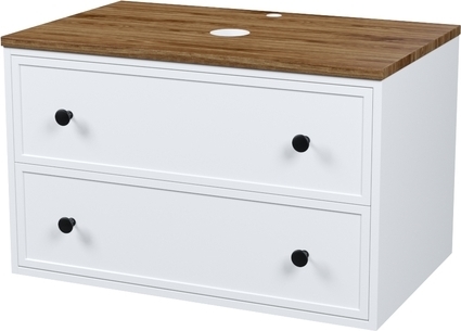 Вместительная подвесная тумба Torr классического молочно-белого цвета со столешницей из МДФ в оттенке ореха макадамия. Сочетает в себе узнаваемый стиль и практичность популярного скандинавского дизайна. Ее четкие формы, теплый цвет столешницы, фасады с декоративной филенкой, круглые ручки смотрятся гармонично и впишутся в любой современный интерьер. Подойдет любой накладной умывальник, покупается отдельно.
