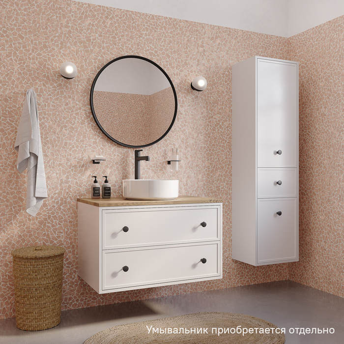 Вместительная подвесная тумба Torr классического молочно-белого цвета со столешницей из МДФ в оттенке ореха макадамия. Сочетает в себе узнаваемый стиль и практичность популярного скандинавского дизайна. Ее четкие формы, теплый цвет столешницы, фасады с декоративной филенкой, круглые ручки смотрятся гармонично и впишутся в любой современный интерьер. Подойдет любой накладной умывальник, покупается отдельно.