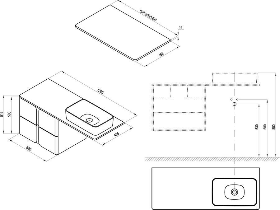 Характеристики тумба со столешницей Ravak (X000001364+X000001372)