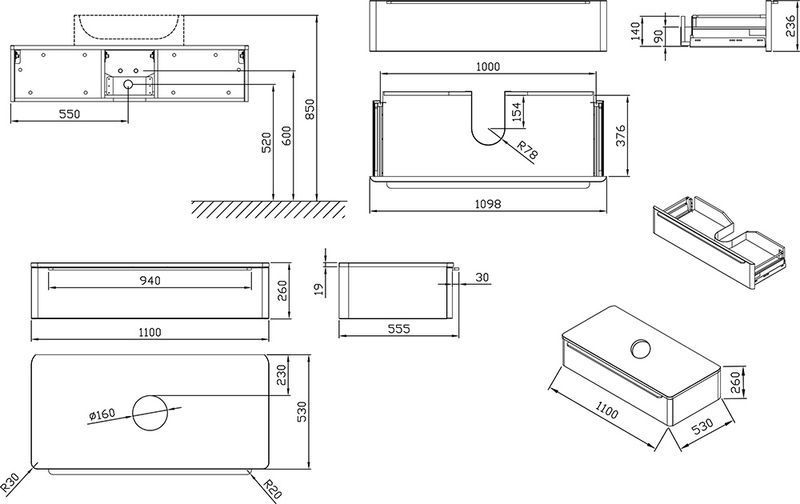 - размеры (длина/глубина/высота): 110 x 53 x 26 см