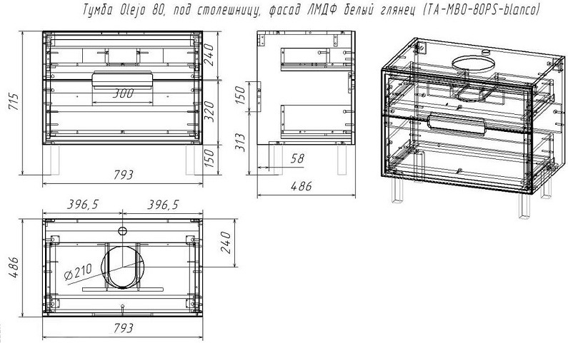 Характеристики тумба со столешницей Taliente (TA-MBO-80PS-blanco+TA-MB-ST80-blanco)