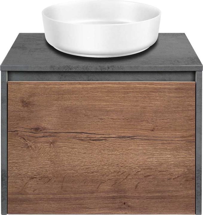 Тумба подвесная со столешницей Vincea Mesa 60 см, система хранения: 2 выкатных ящика с доводчиками (один большой и внутренний органайзер), цвет - бетон/дуб табак.