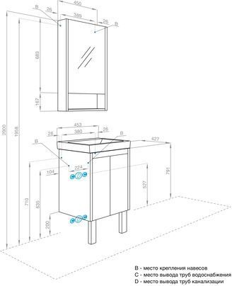 Характеристики тумба с раковиной Акватон (1A278701SDB20+1WH501630)