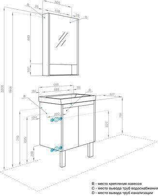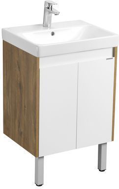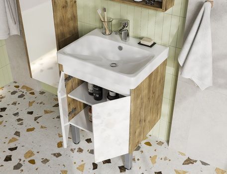 Тумба универсальная Акватон Сканди Doors с раковиной Santek Адриана 55, цвет дуб рустикальный/белый глянцевый. Ножки в комплекте.