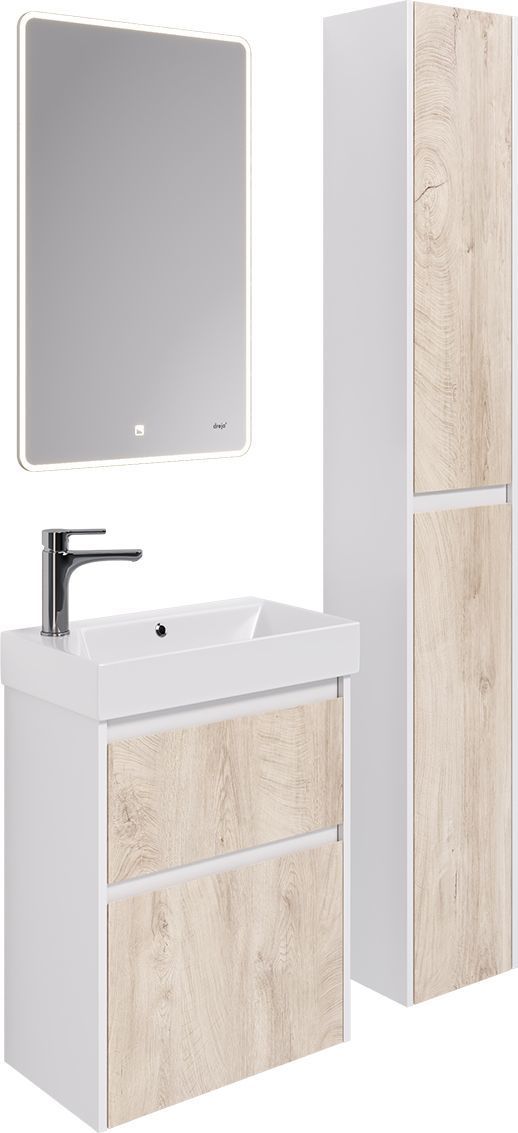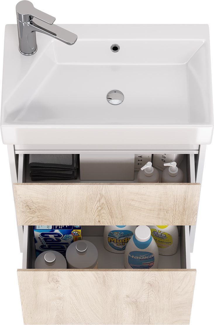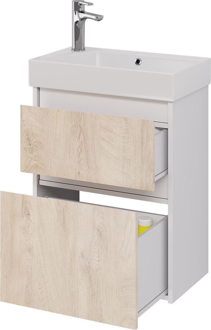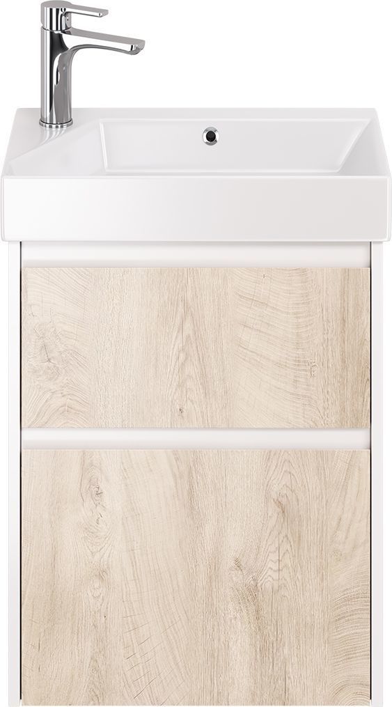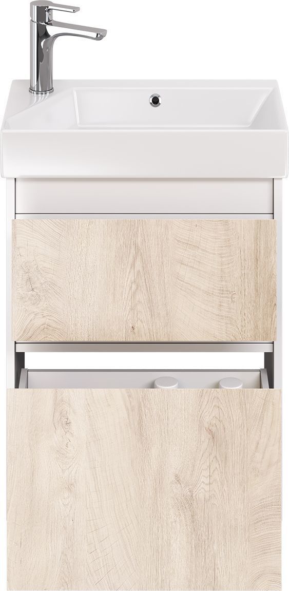 Тумба универсальная Dreja Slim 55 см с раковиной Slim Synergy 55 см, 2 ящика, цвет дуб кантри/белый глянцевый.