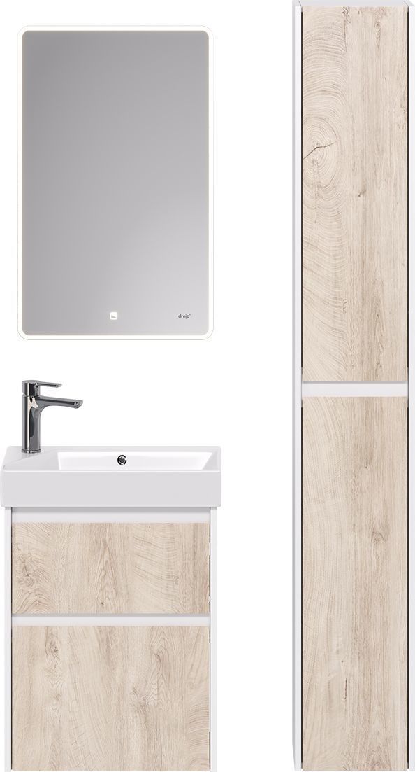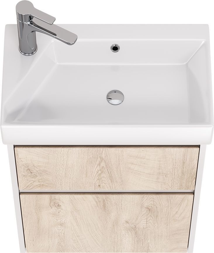 Тумба универсальная с раковиной Dreja Slim 55 см 99.0500, дуб кантри/белый глянцевый