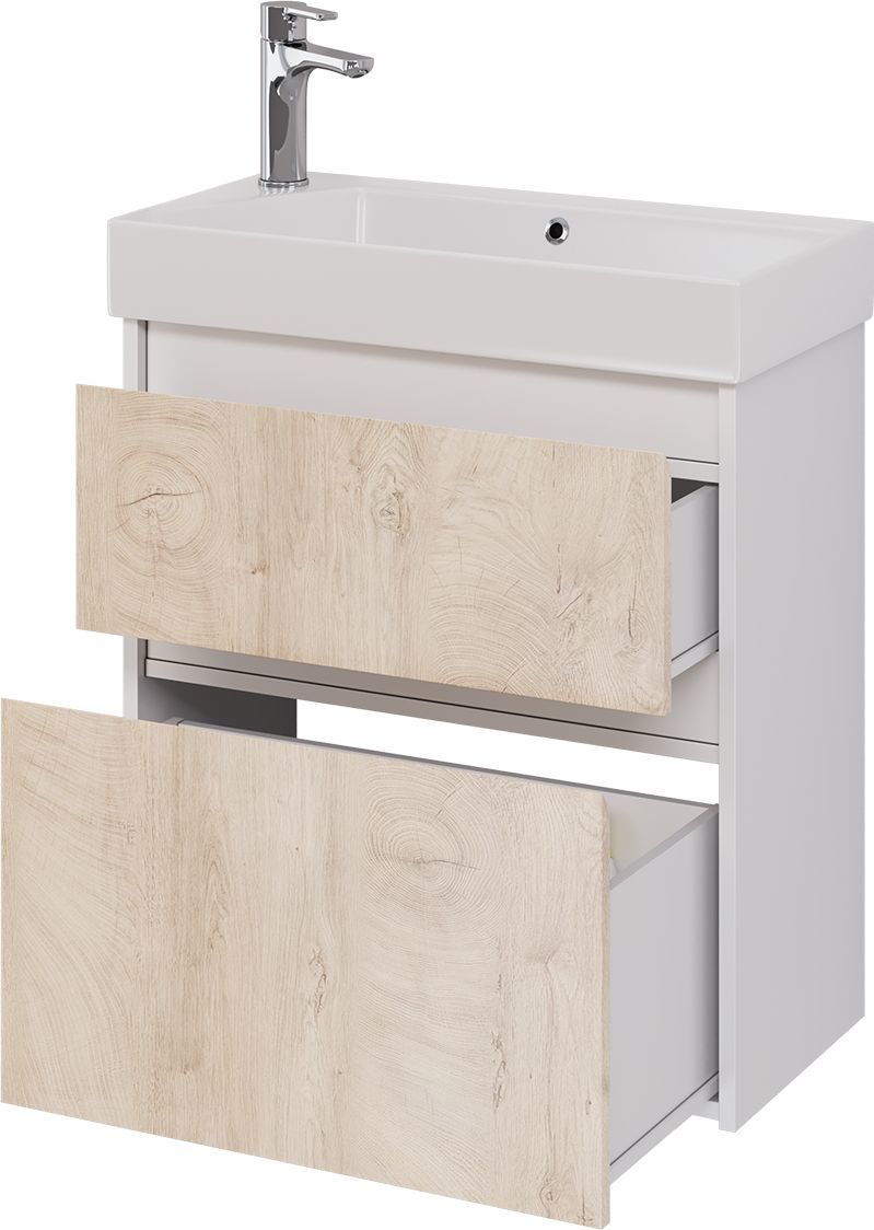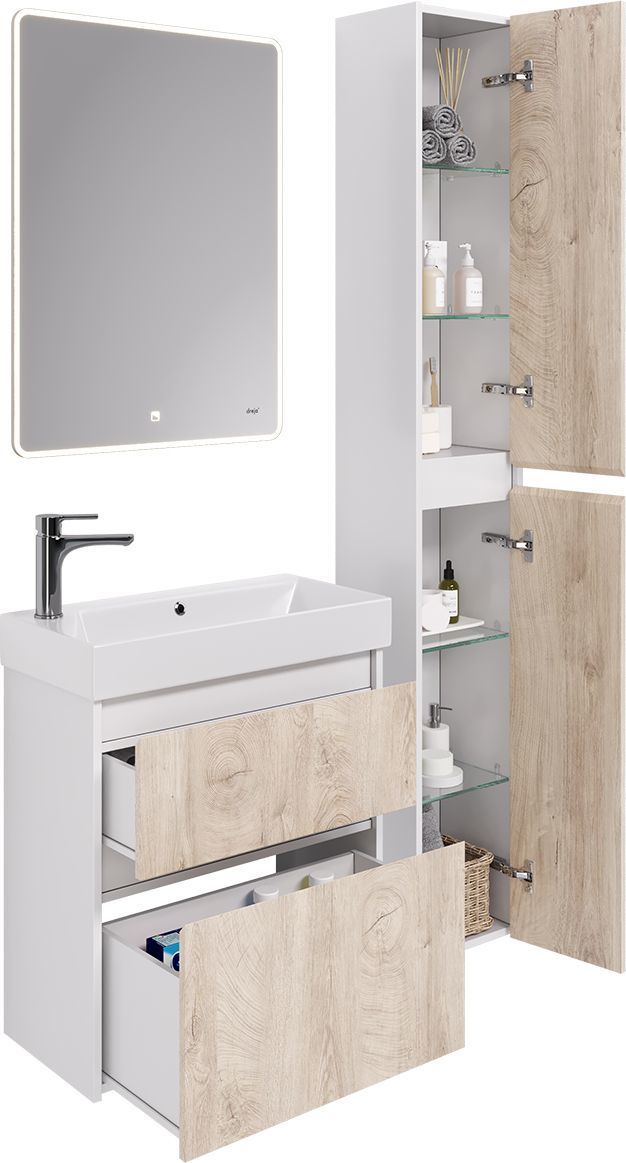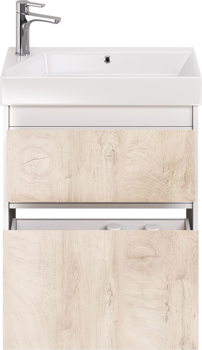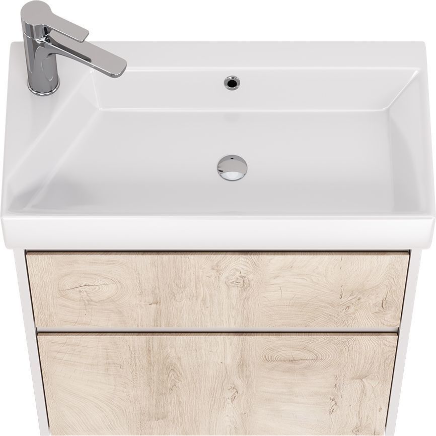 Тумба универсальная Dreja Slim 65 см с раковиной Slim Synergy 65 см, 2 ящика, цвет дуб кантри/белый глянцевый.