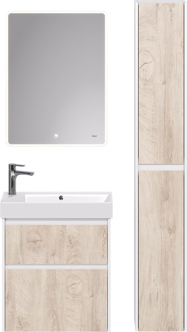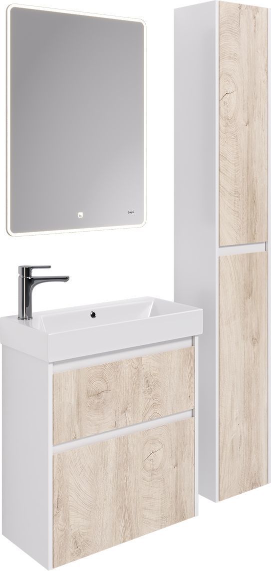 Тумба универсальная с раковиной Dreja Slim 65 см 99.0501, дуб кантри/белый глянцевый