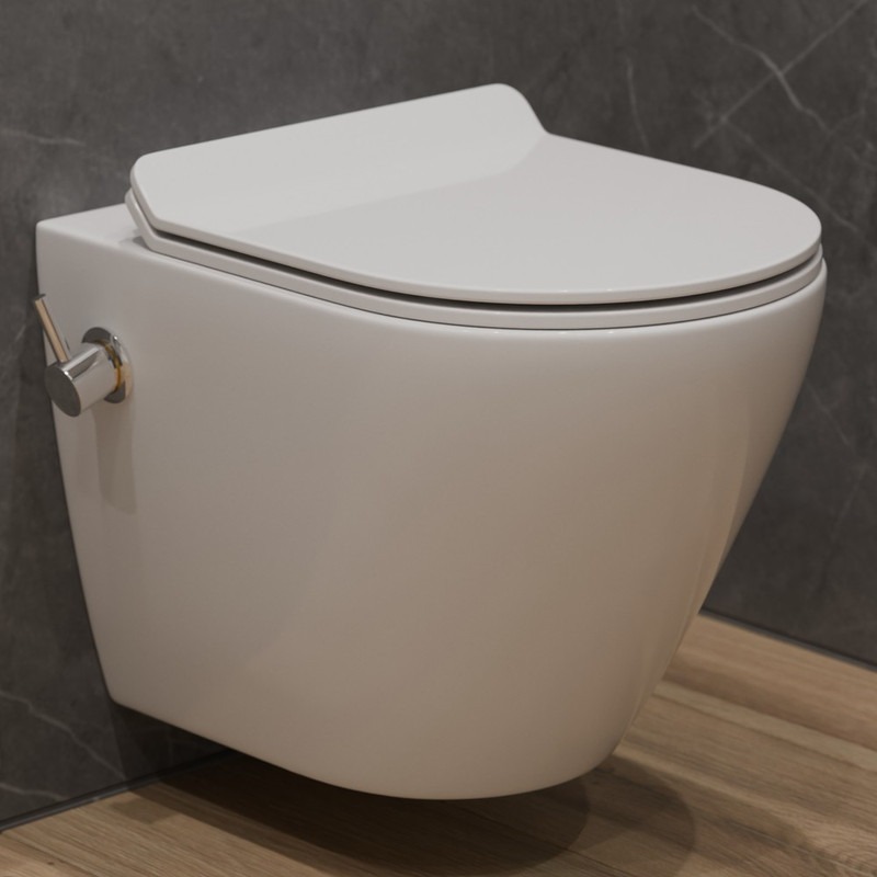 Унитаз-биде подвесной безободковый EvaGold EG070012 с тонкой крышкой микролифт