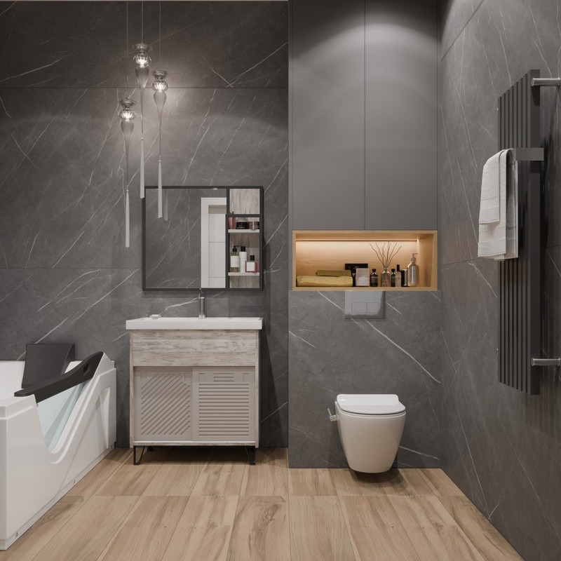 Основное преимущество подвесного унитаза - скрытые коммуникации, что придает санузлу аккуратный вид, визуально увеличивает пространство и облегчает уборку пола.