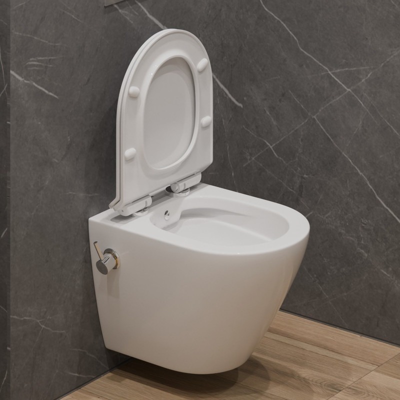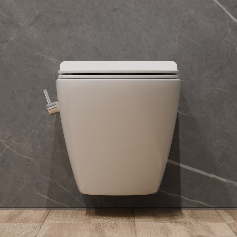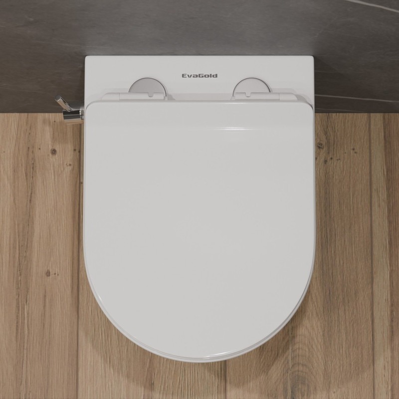 Унитаз-биде подвесной безободковый EvaGold EG070012, каскадный слив, сиденье с тонкой крышкой микролифт, цвет белый.