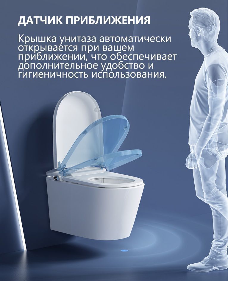 - Особое внимание уделено вопросам гигиены и безопасности: форсунки биде автоматически очищаются, а антибактериальное покрытие поверхностей препятствует размножению микроорганизмов. Энергоэффективная конструкция включает режим энергосбережения и автоматическое отключение при длительном простое, что делает эксплуатацию экономичной.