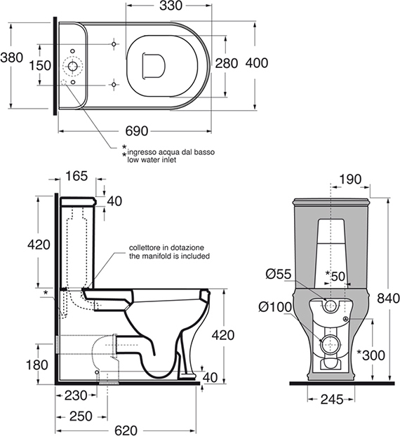 - Механизм с кнопкой двойного слива 3/6л.(подключение нижнее и боковое)