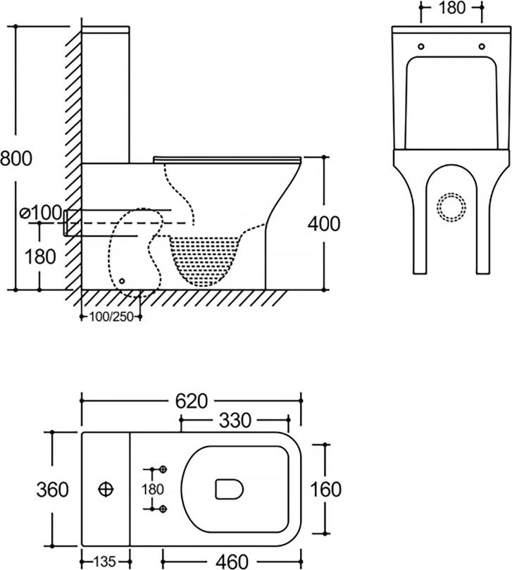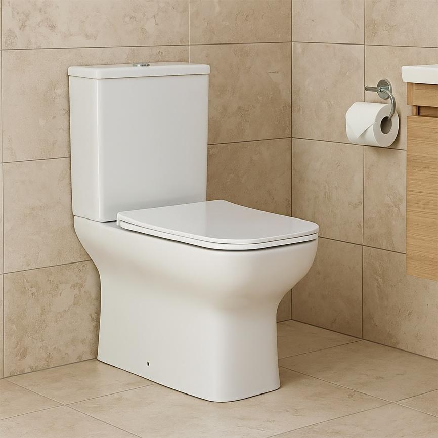 - Унитаз-компакт AN STONE безободковый, с каскадным смывом и системой Антивсплеск.