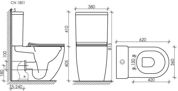 Характеристики унитаз безободковый,унитаз-компакт Ceramicanova (CN1801)