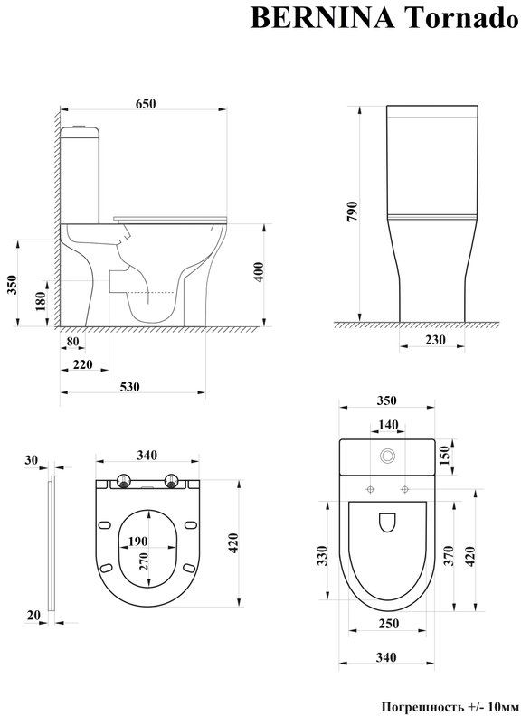 Унитаз-компакт безободковый Cerutti SPA Bernina 11133 с тонкой крышкой микролифт (система смыва Торнадо)
