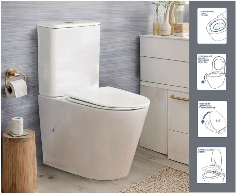 Унитаз-компакт безободковый Cerutti SPA Piera 10560 с тонкой крышкой микролифт (система смыва Торнадо)
