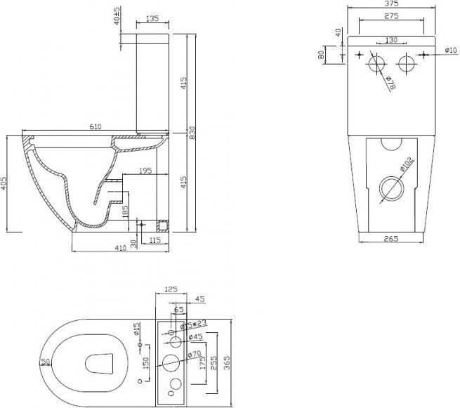 Характеристики унитаз безободковый,унитаз-компакт Cezares (CZR-152-CPR+CZR-151-T)