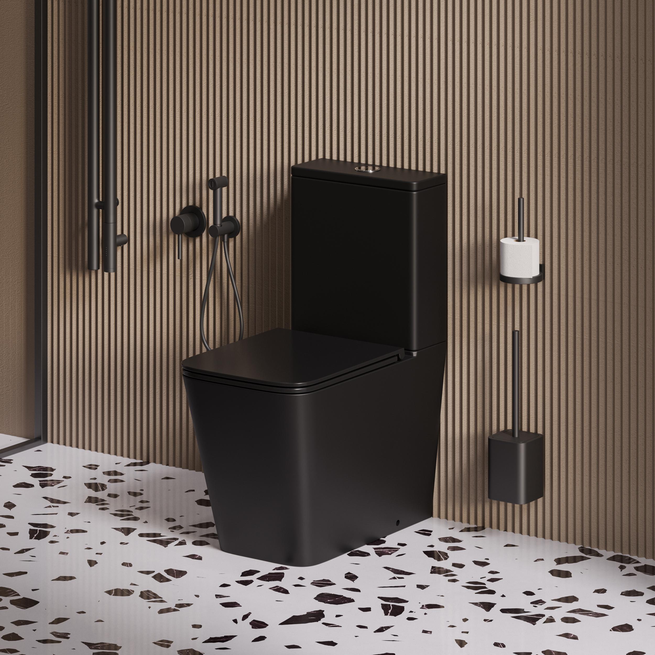 Унитаз-компакт безободковый Grossman GR-4418BMSQ с крышкой микролифт, чёрный матовый (Система смыва торнадо)