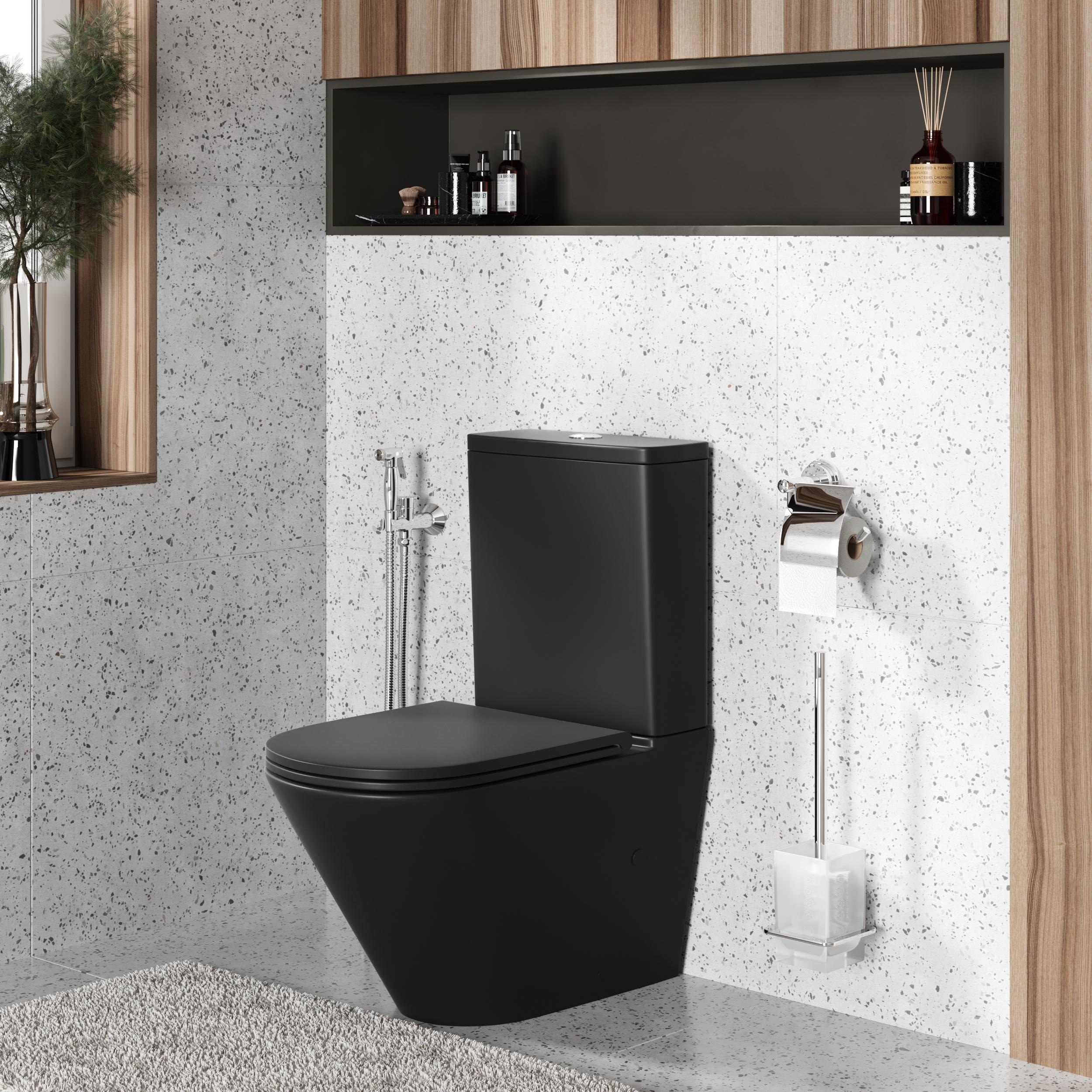 Унитаз-компакт безободковый Grossman GR-4450BMSQ с крышкой микролифт, чёрный матовый (Система смыва торнадо)