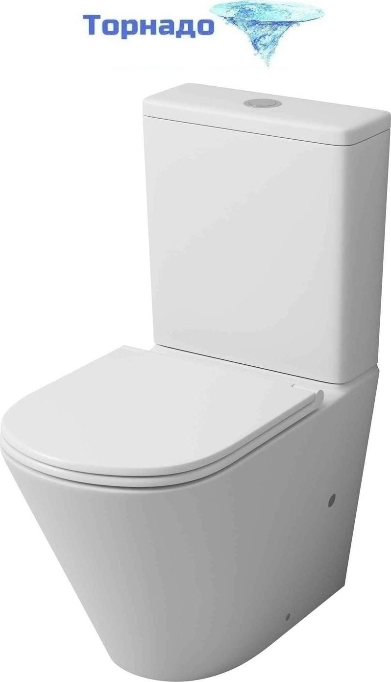 Унитаз-компакт безободковый Grossman GR-4450MSQ с крышкой микролифт, белый матовый (Система смыва торнадо)