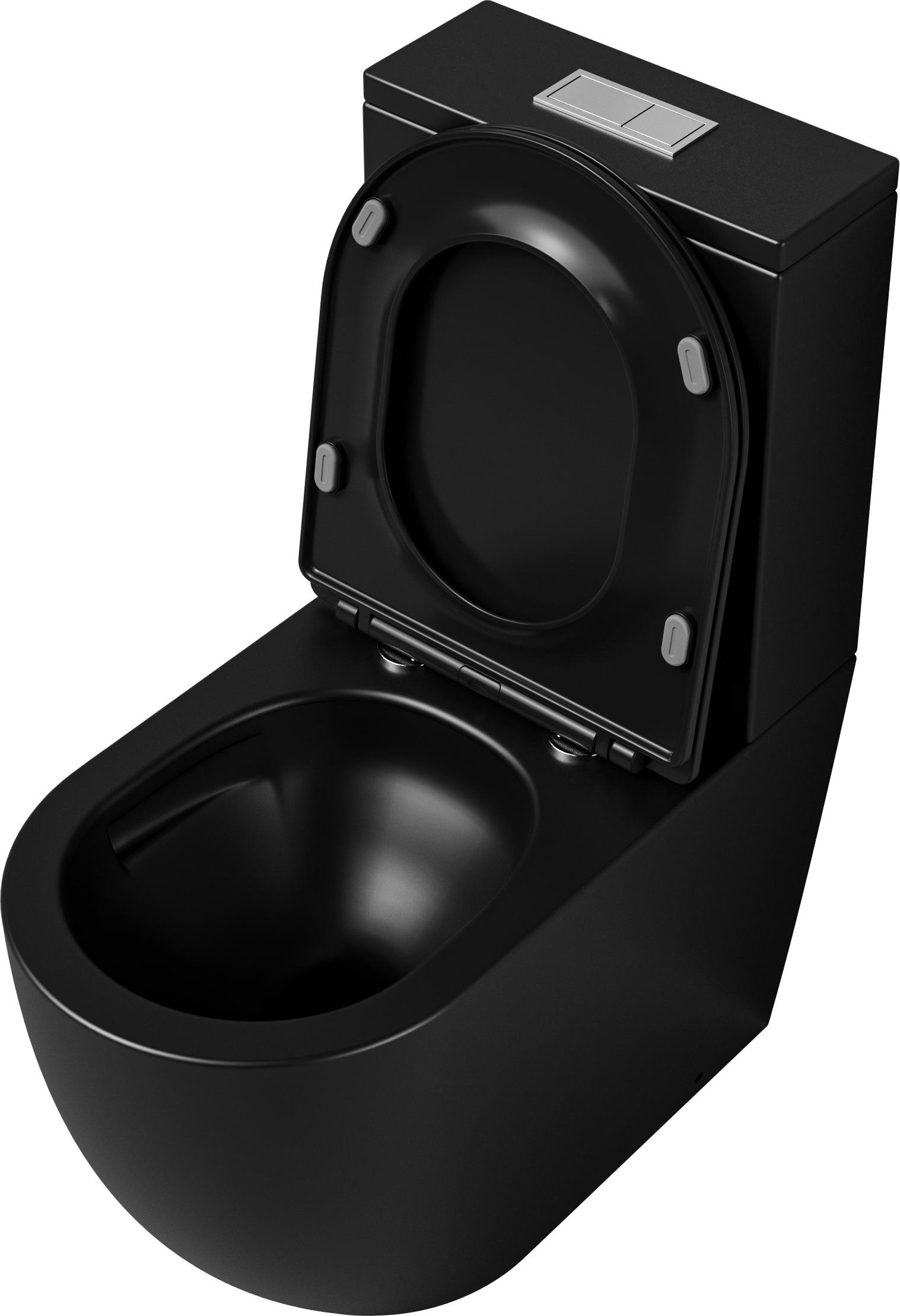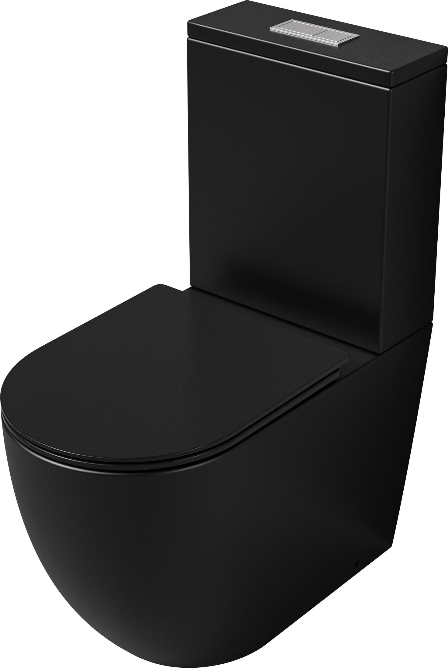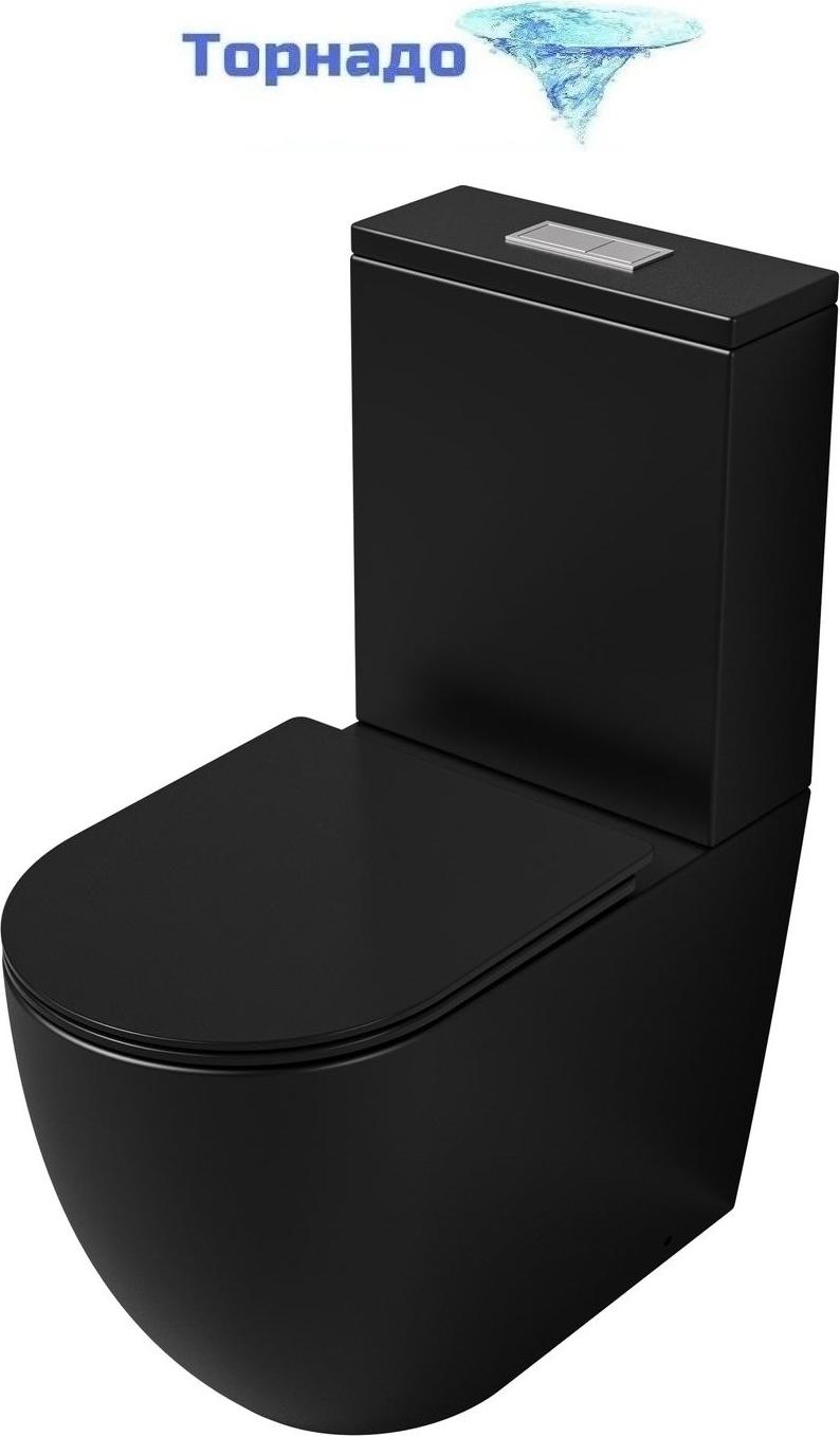 Унитаз-компакт безободковый Grossman GR-4494BMSQ с крышкой микролифт, чёрный матовый (Система смыва торнадо)