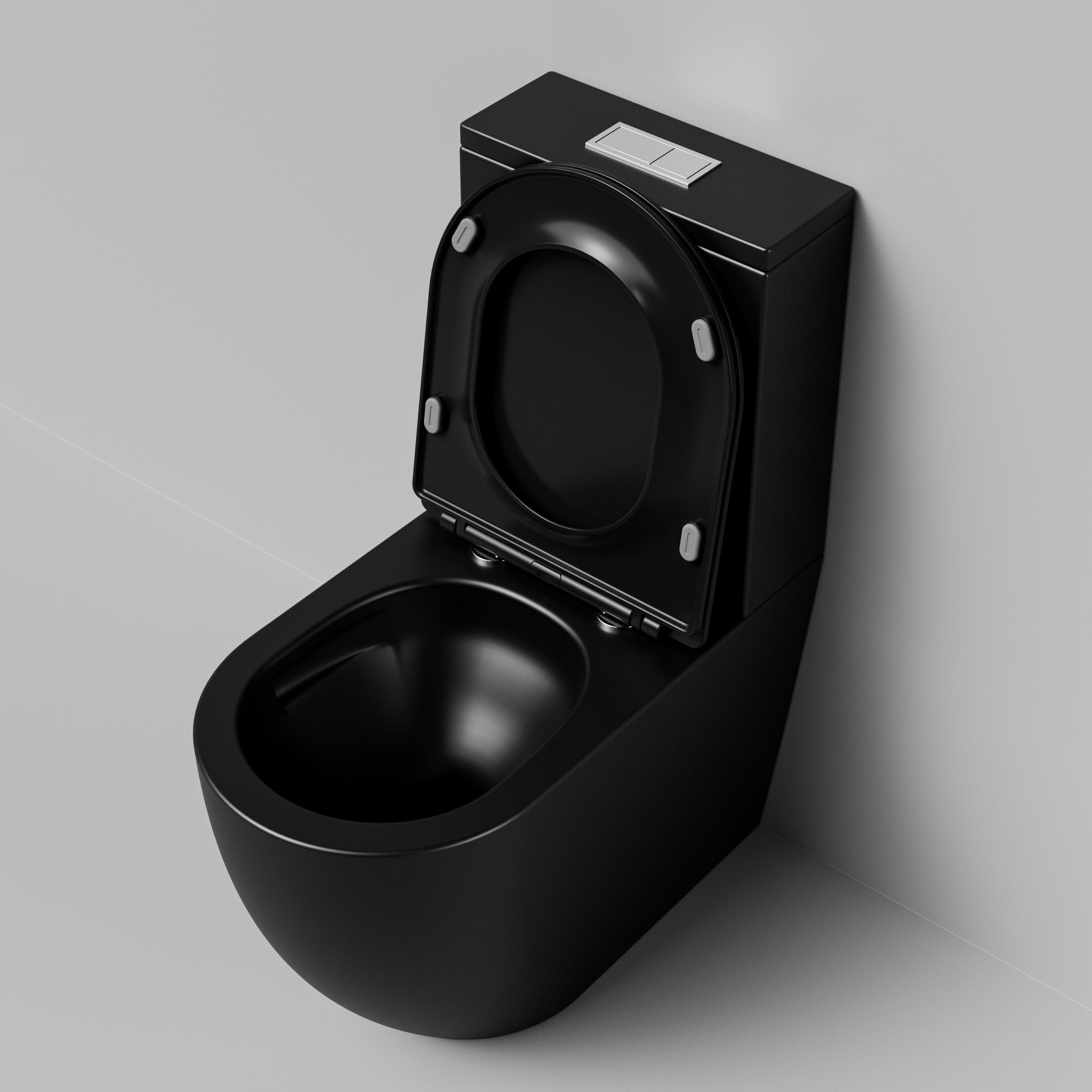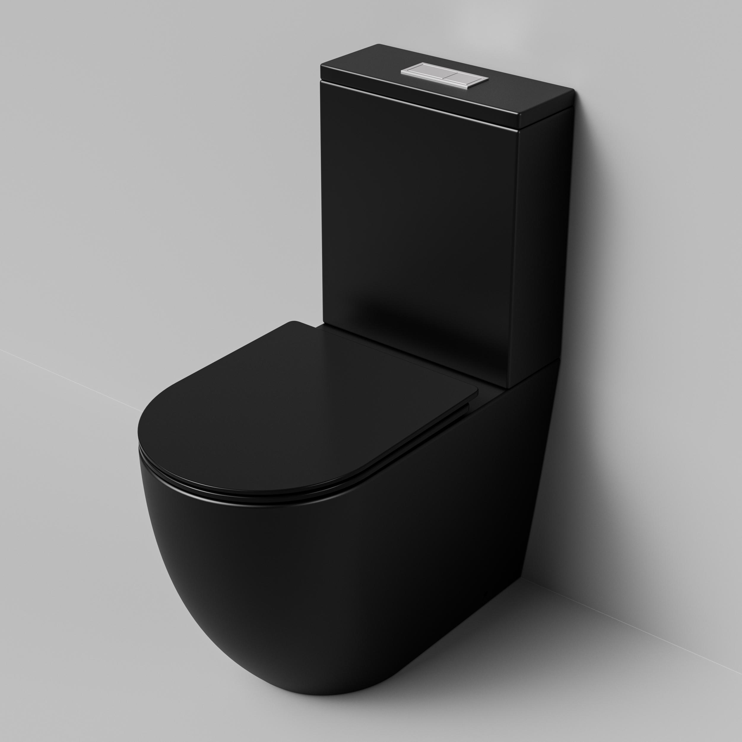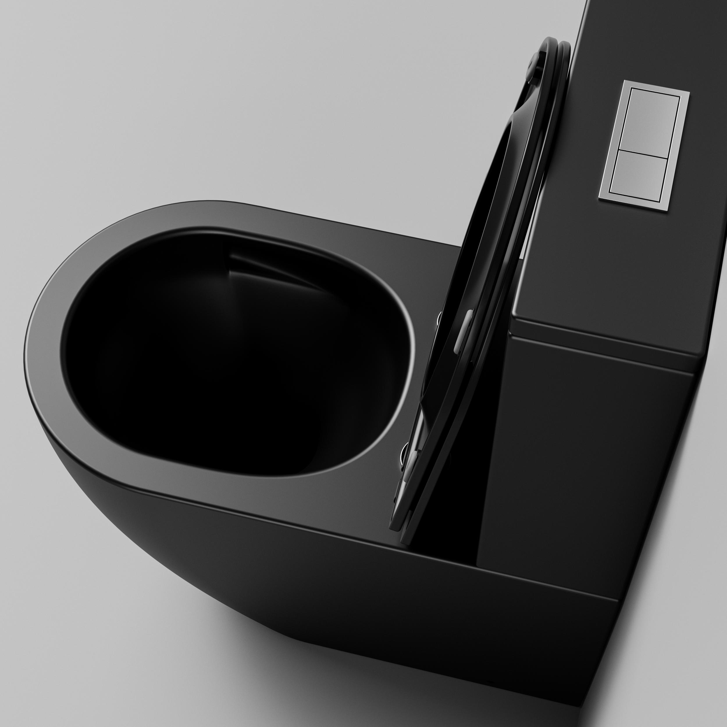 Унитаз-компакт безободковый Grossman GR-4494BMSQ с крышкой микролифт, чёрный матовый (Система смыва торнадо)