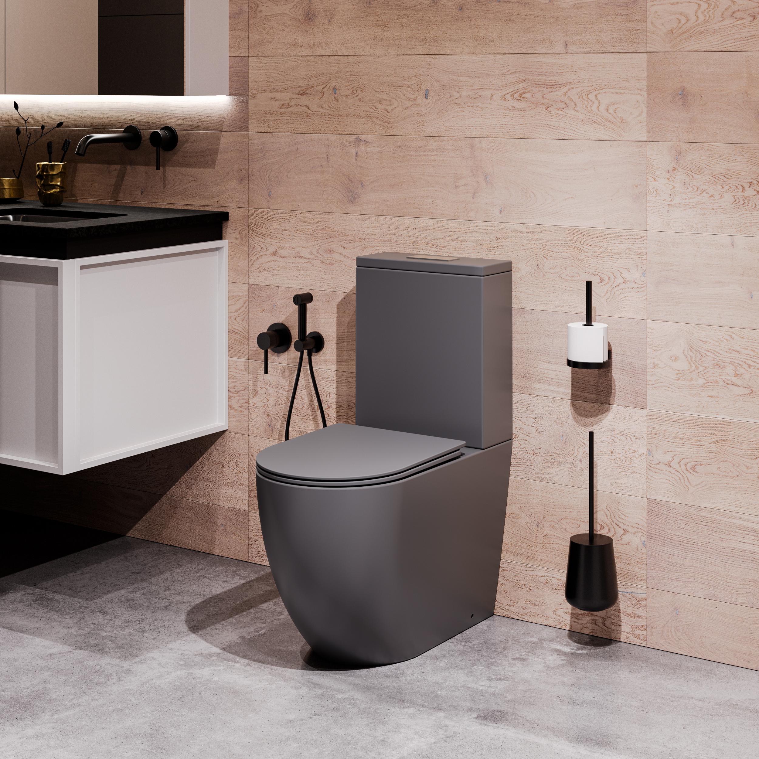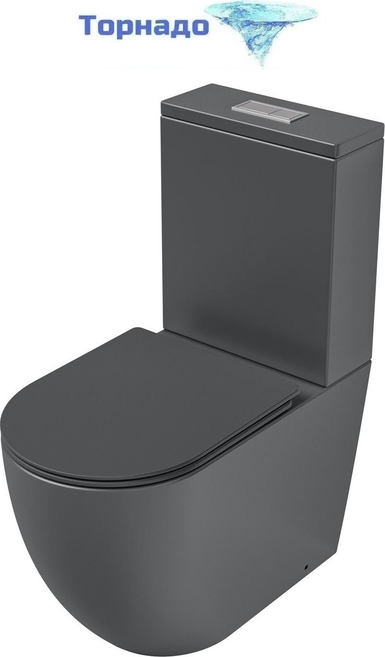 Унитаз-компакт безободковый Grossman GR-4494GMSQ с крышкой микролифт, серый матовый (Система смыва торнадо)