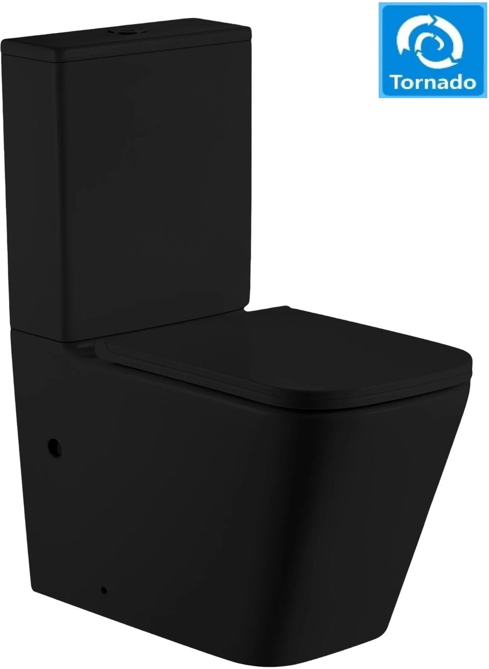 Унитаз-компакт безободковый SantiLine SL-5028MB с тонкой крышкой микролифт (система смыва Торнадо) чёрный матовый