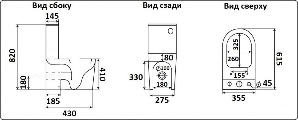 Характеристики унитаз безободковый,унитаз-компакт CeramaLux (2179)